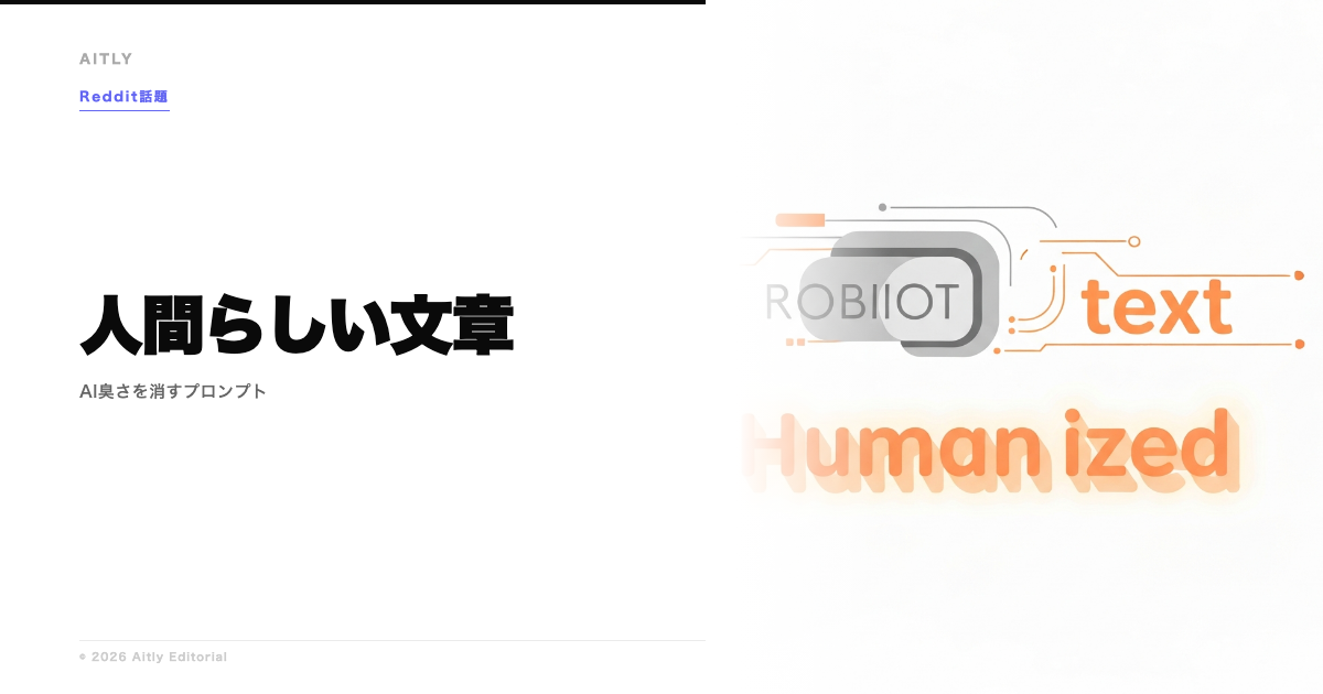 ChatGPTが書く文章は「AI臭い」。この問題に対して、Redditユーザーが1年かけて検証したプロンプトを公開し、475アップボート・41コメントの反響を呼んでいます。 「いかにも人工的」「どこかで見たような表現」「ですます調が不自然」。ChatGPTの出力に感じる違和感には理由があります。能動態を使わない、同じリズムの文が続く、決まりきったフレーズが多い。投稿主はこれらを体系的に潰すプロンプトを作り上げました。この記事では、そのプロンプトの全文翻訳とAitly編集部の独自検証結果をお届けします。 こ ...