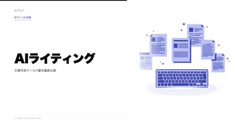 2026年現在、AIライティングツールは60種類以上あり「どれを選べばいいかわからない」という声がSNSでも目立ちます。この記事では、Aitly編集部が7つの主要ツールを同一プロンプトで実際にテストし、料金・精度・SEO対応の3軸で比較しました。
