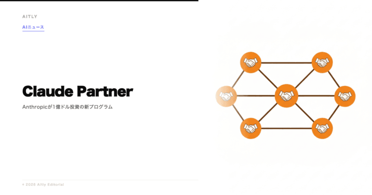 Anthropicは2026年3月12日、エンタープライズ向けの「Claude Partner Network」に1億ドル(約150億円)を投資すると発表しました。Accenture、Deloitte、Cognizant、Infosysの大手コンサルティング4社がローンチパートナーとして参画し、初の認定資格「Claude Certified Architect, Foundations」も同時に発表されています。
