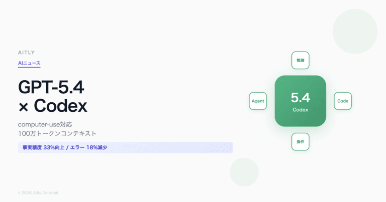 「AIモデルを用途ごとに切り替える」時代から「1つのモデルにすべてを任せる」時代への転換点として、GPT-5.4のリリースはAI業界全体にとって重要なマイルストーンだ。今後はcomputer-useの一般ユーザー向け開放や、競合モデルとの性能比較に注目していきたい。