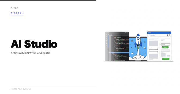 AntigravityはGoogleが開発したアプリケーション基盤技術で、AI Studioに統合されることでフルスタック開発(UI構築・バックエンド処理・デプロイ)をブラウザ上で完結させることを可能にしています。