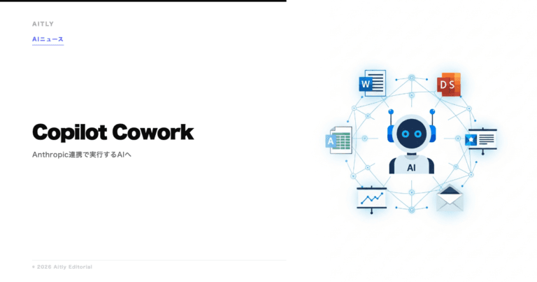 Ledge.aiは「Anthropicと連携し”実行するCopilot”へ」と報じており、GIGAZINEやImpress Watchも即日で詳報を伝えた。Microsoft 365 CopilotにOpenAI以外のモデルが採用されるのは今回が初めてであり、AIエージェント市場の勢力図を大きく変える可能性がある。本記事では、発表の背景から機能詳細、業界への影響、競合との比較まで多角的に解説する。
