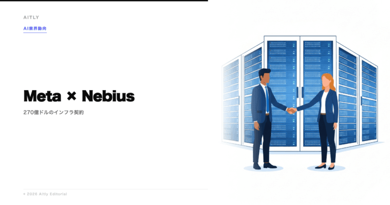 今回の契約は、AIインフラ市場における「ネオクラウド」の存在感が高まっていることも示している。ネオクラウドとは、AWS、Azure、GCPといった従来の大手クラウドとは異なり、AI学習・推論に特化したクラウドインフラを提供する新興企業群を指す。NebiusのほかCoreWeave、Lambda Labsなどがこのカテゴリに属する。