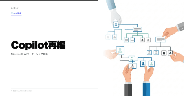 MicrosoftはCopilot部門を大規模に再編し、元Snap幹部のJacob Andreou氏をExecutive Vice President(EVP)に任命。消費者向け・法人向けの両Copilotを一本化して指揮させる。Mustafa Suleyman氏(Microsoft AI CEO)はCopilotの日常管理から離れ、次世代モデル「超知能」開発に集中する体制へと移行した。