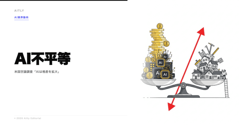 「AIは富裕層をさらに富ませるだけの機械だ」──米国の世論調査でこうした認識が広がっていることが明らかになった。David Shorが率いるBlue Rose Researchの最新調査をGizmodoが報道し、Reddit r/technologyで1,400以上のアップボートを集めた。