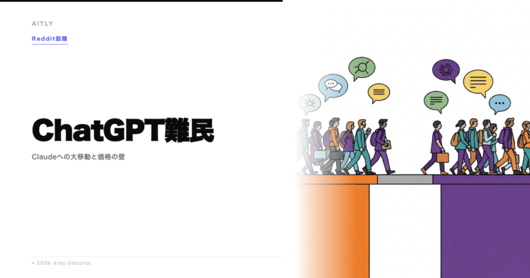 「ChatGPT難民がここに来た。そしてまた去っていくだろう」。r/ClaudeAIに投稿されたこの挑発的なタイトルが1,138アップボート・358コメントの大議論を巻き起こしています。ChatGPTからClaudeへ乗り換えるユーザーが急増する一方、Pro(月額$20)とMax(月額$100)の間に広がる価格の崖、そして3月28日にプロモーション期間が終了した後に待ち受ける現実について、Reddit上で激しい意見の応酬が繰り広げられました。