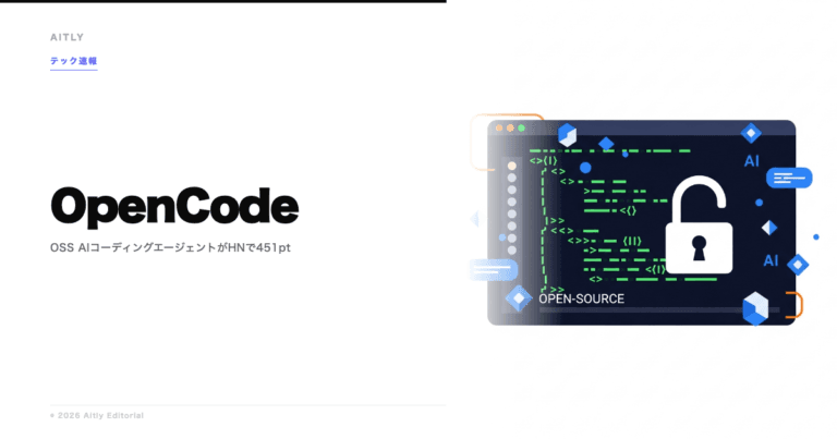 OpenCodeは「AIコーディングエージェントのオープンソース版Copilot」という位置づけを狙うプロダクトだ。HNで451pt・203コメントという反響は、AIコーディングツール分野への関心の高さと、オープンソースかつマルチLLM対応という設計思想への支持を裏付けている。