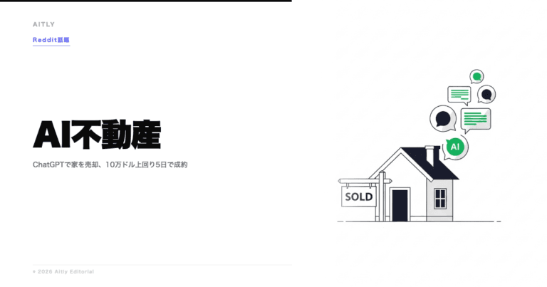 Redditで120アップボートを集めた「エージェントは安く値付けする」というコメントは的を射ています。仲介のインセンティブ構造上、エージェントは売主の利益最大化より回転率を優先しがちです。ChatGPTにはそのバイアスがないため、市場データに基づいた強気の提案ができた可能性があります。ただし「AIが不動産エージェントを不要にした」と読むのは飛躍であり、セカンドオピニオンの一つとして位置づけるのが現実的です。