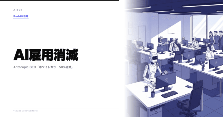 Anthropic CEOのダリオ・アモデイが、ホワイトカラーの初級職(エントリーレベル)の50%が3年以内に消滅すると発言した動画がr/singularityに投稿され、わずか2時間足らずで160超のアップボートと132件のコメントを集める急成長スレッドとなっている。AI業界トップが繰り返す雇用消滅の警告に、Redditユーザーの反応は「当然」「ただのハイプ」「じゃあ若者はどうすればいい」と真っ二つに割れた。
