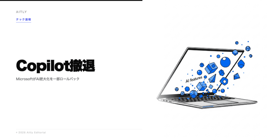 MicrosoftがCopilot AI肥大化をロールバック|Redditで「Deslopifying」の声、Windows離れ加速か